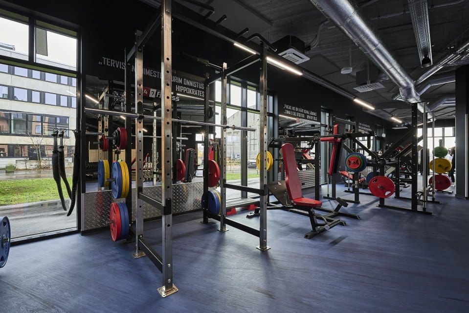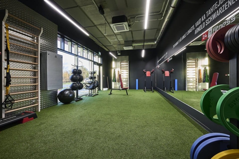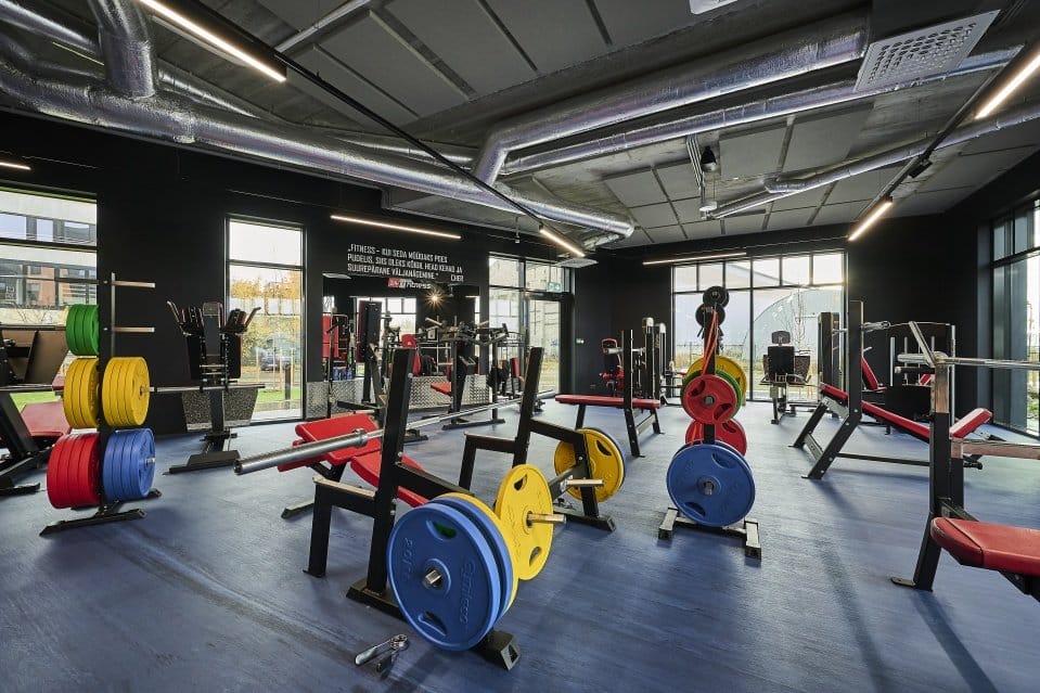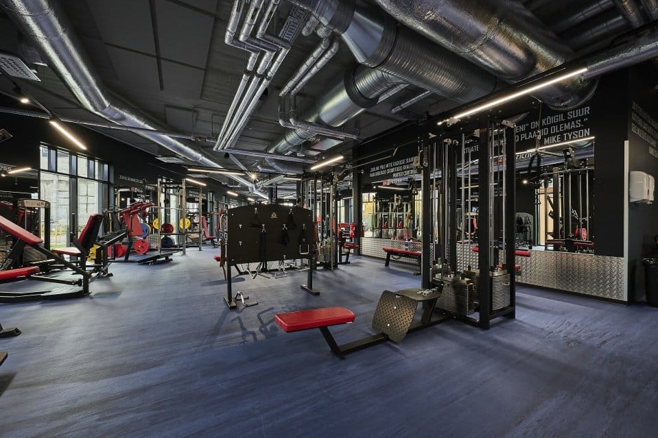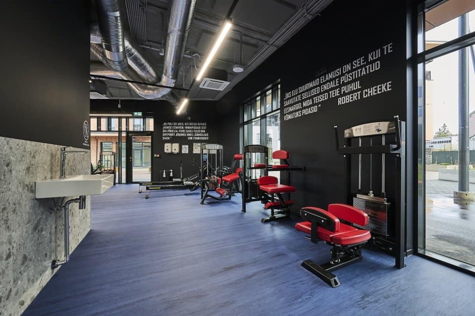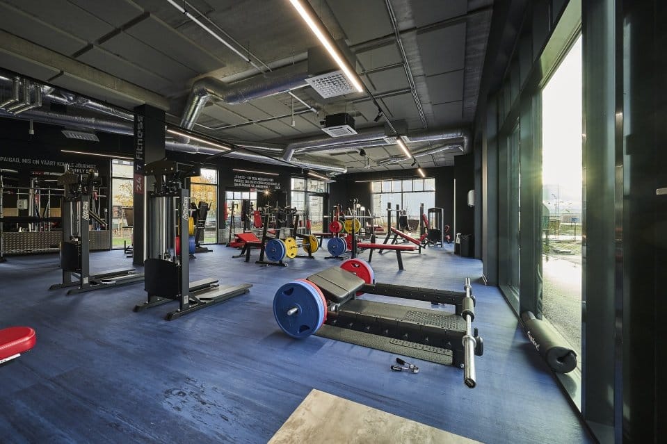 4 Technogym jooksurada, 1 Technogym STAIRMASTER; 6 Gymleco ratast, 4 Gymleco crosstrainerit, 2 sõudeergomeetrit,1 Lifefitness spinning ratas, 15 Gymleco plokkmasinat ja 15 Gymleco vabaraskustega masinat, Eleiko tõsteplatvorm, Glute Builder
