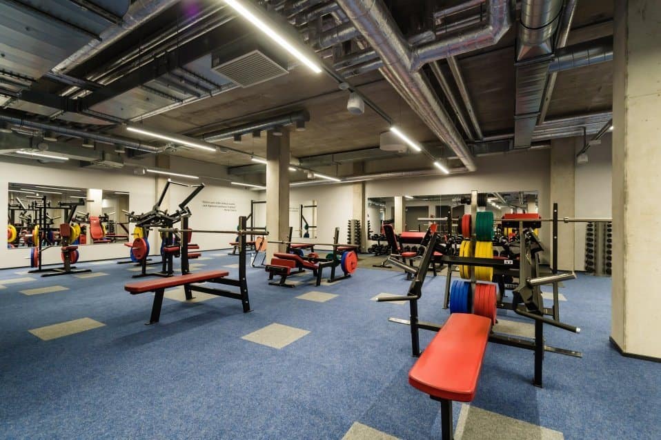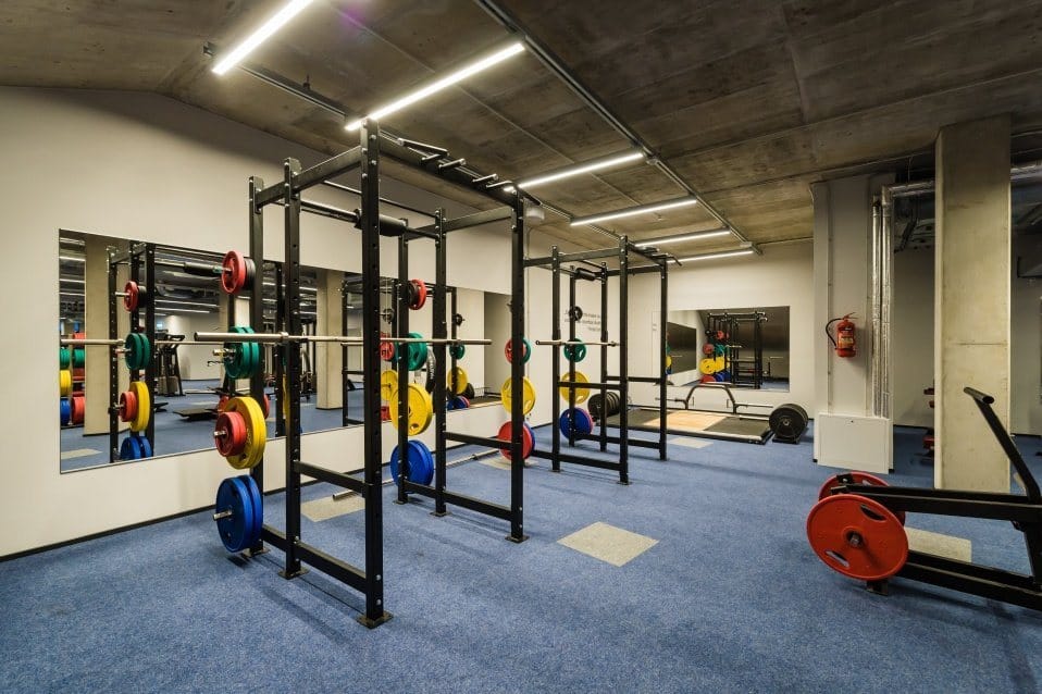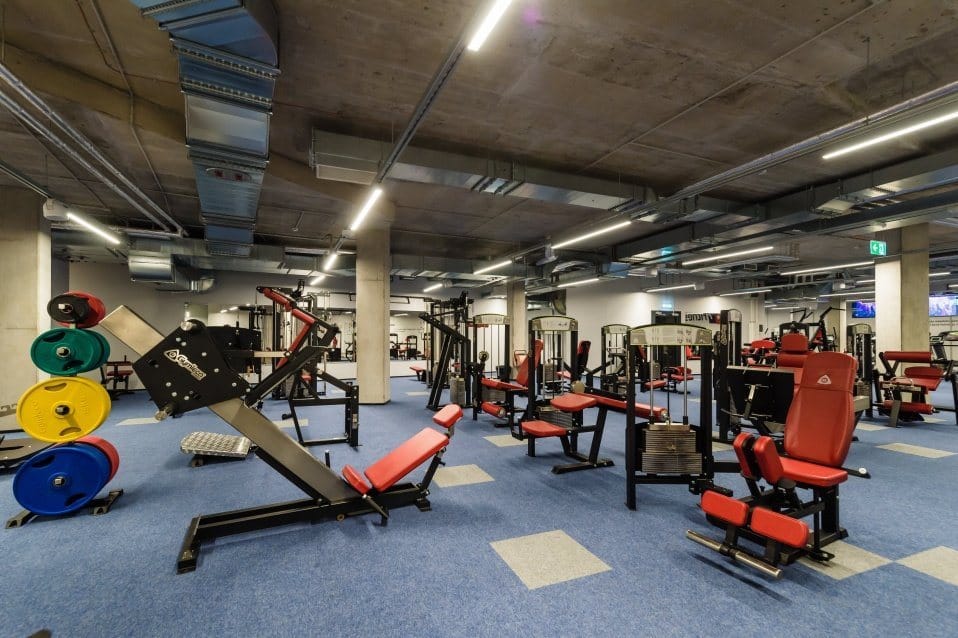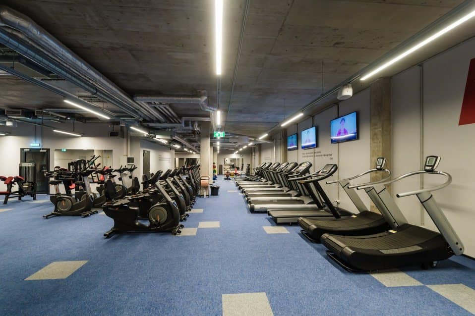 1 Technogym jooksurada, 2 SkillMill jooksurada, 6 gymleco jooksurada, 1 STARIMASTER, 10 Gymleco ratast, 7 Gymleco crosstrainerit, 23 Gymleco plokkmasinat ja 20 Gymleco vabaraskustega masinat, tõstepõrand, 3 C2 sõudeergomeetrit, C2 SkiErg, 1 Life fitness spinningratas.