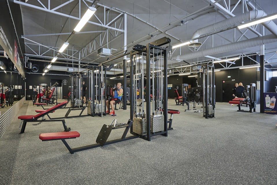 7 jooksurada, 1 SkillMill jooksurada, 6 Gymleco ratast, 6 Gymleco crosstrainerit, 25 Gymleco plokkmasinat ja 25 Gymleco vabaraskustega masinat, 3 C2 sõudeergomeetrit, 1 SkiErg, 2 Eleiko tõstepõrandat, 1 Technogym Stairmaster, Spinning ratas, Funktsionaal venitus ja treening ala, GluteBuilder, Glute Lunge